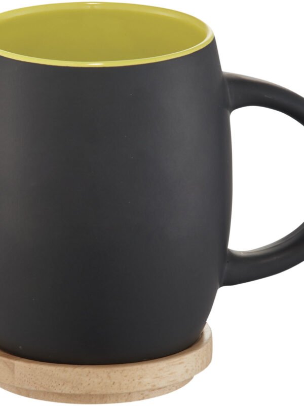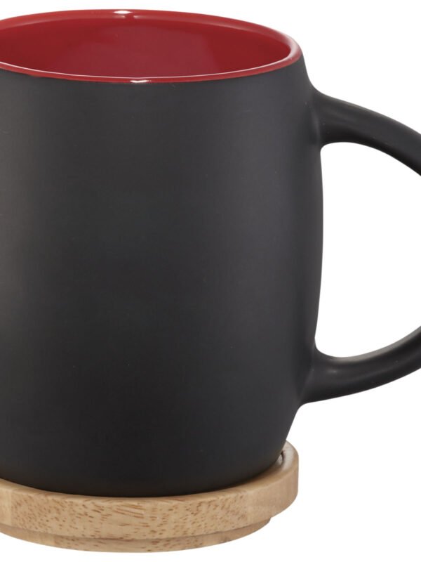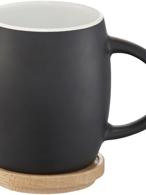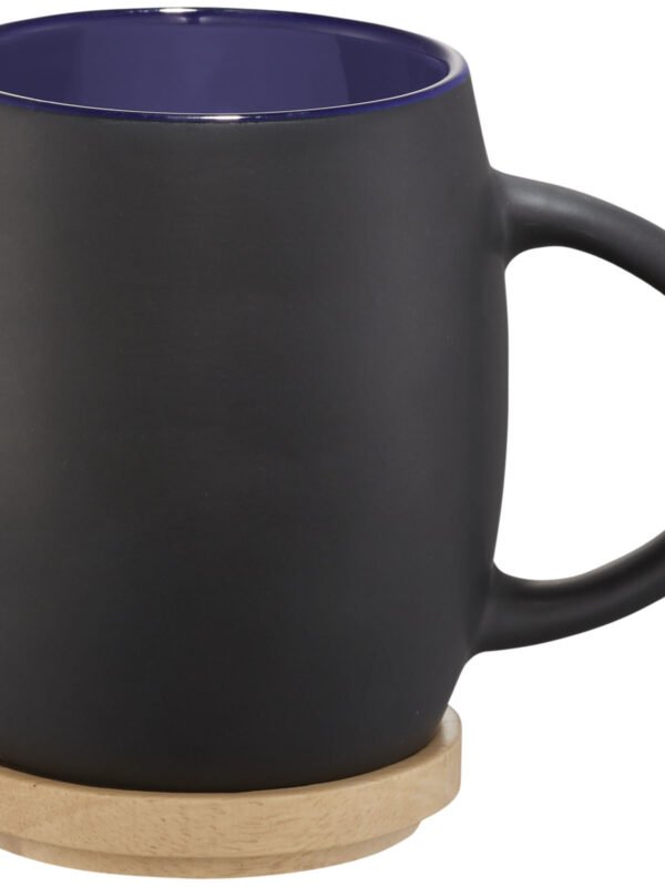 Solid black - Royal blue Hearth 400 ml ceramic mug with wooden coaster