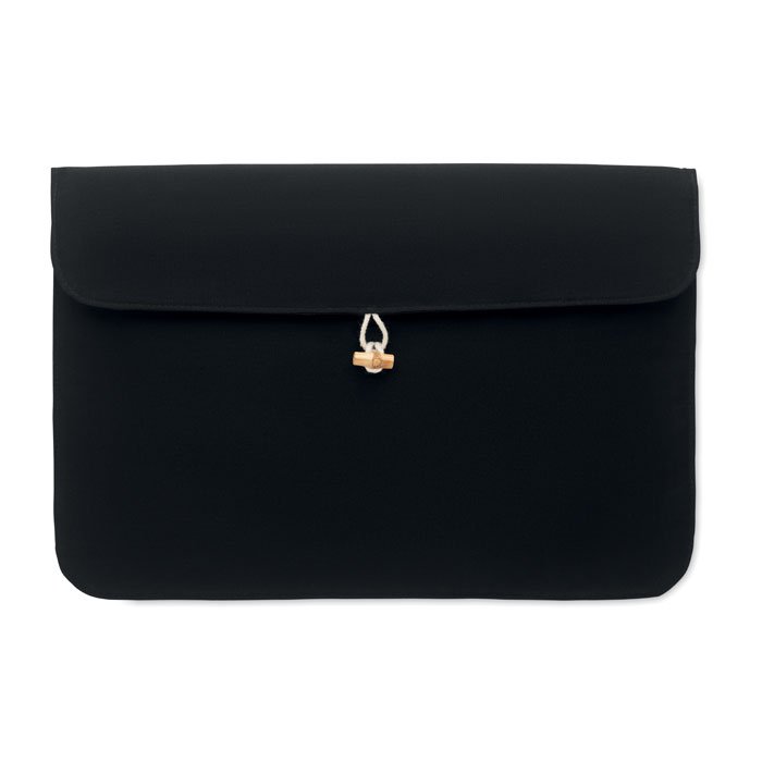 15 inch padded laptop pouch in 220 gr/m² cotton. Inner lining 120 gr/m². Bamboo button closure.