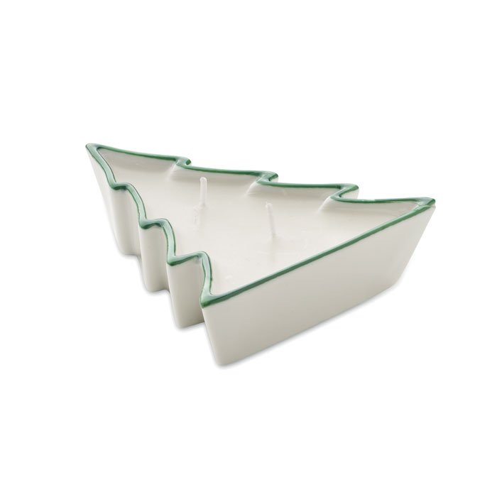 Plant based wax candle in a Christmas tree shape porcelain holder with 2 wicks. 60 gr. Burn time: 4 hours.