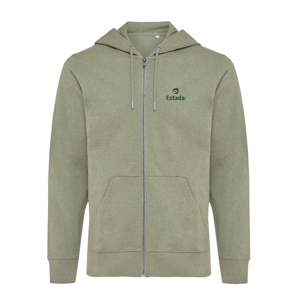 Unisex modern fit zip through hoodie made from 100% cotton, of which 50% is recycled and 50% organic, in 340 G/M². The zip through hoodie has a double-layered hood, long sleeves and 1×1 rib. The inside is soft-brushed fleece for extra comfort. The use of genuine recycled & organic fabric materials and environmental impact claims are guaranteed, by using the AWARE™ disruptive physical tracer and blockchain technology. By scanning the QR code, you will gain access to a dedicated digital passport of the product. 2% of proceeds of each sold product will be donated to Water.org. This product is OEKO-TEX® STANDARD 100 2303045 Centexbel certified. Due to the nature of recycled yarns, impurities and colour variations may appear