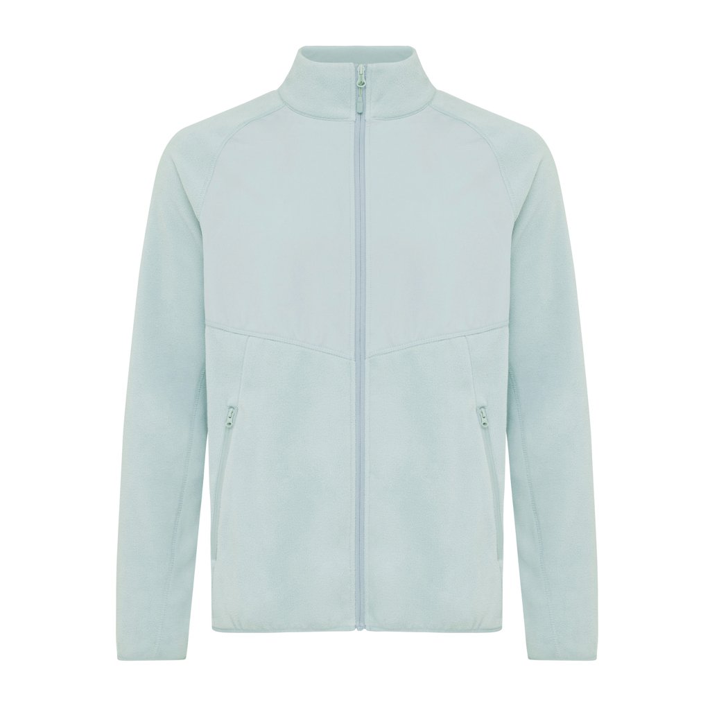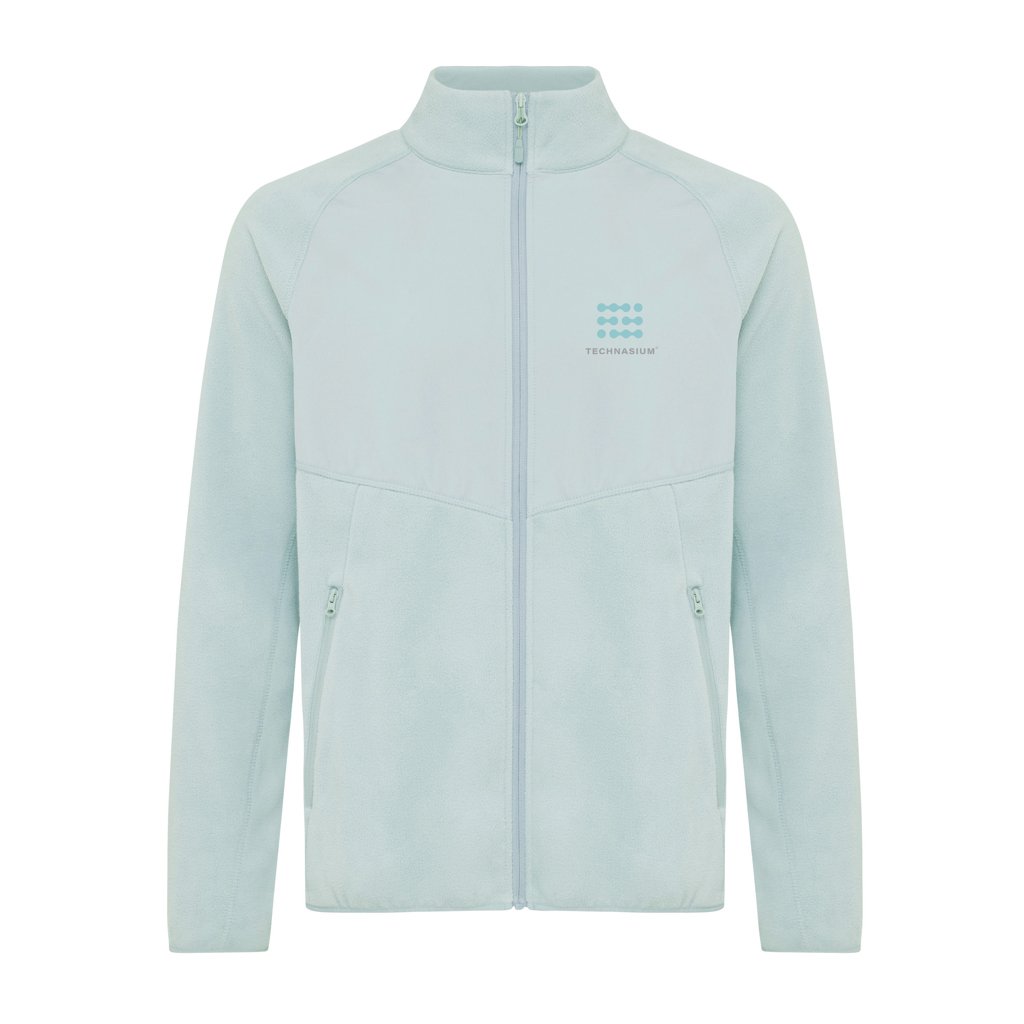 Unisex microfleece zip-through jacket made from 100% post-consumer recycled polyester in 240 G/M² with anti pilling finish. This style is perfect for seasonal layering. The soft and comfortable fleece jacket has a reversed front zipper and practical zip pockets integrated into diagonal seams. Designed for style and comfort, it features raglan sleeves, elastic binding at the bottom hem and cuffs and distinctive 3-needle flatlock top stitch for a sporty look. The woven fabric panel at the chest and at the inside back neck offers a good placement for personalised decoration. The use of genuine recycled & organic fabric materials and environmental impact claims are guaranteed, by using the AWARE™ disruptive physical tracer and blockchain technology. By scanning the QR code, you will gain access to a dedicated digital passport of the product. 2% of proceeds of each sold product will be donated to Water.org. This product is OEKO-TEX® STANDARD 100 certified.