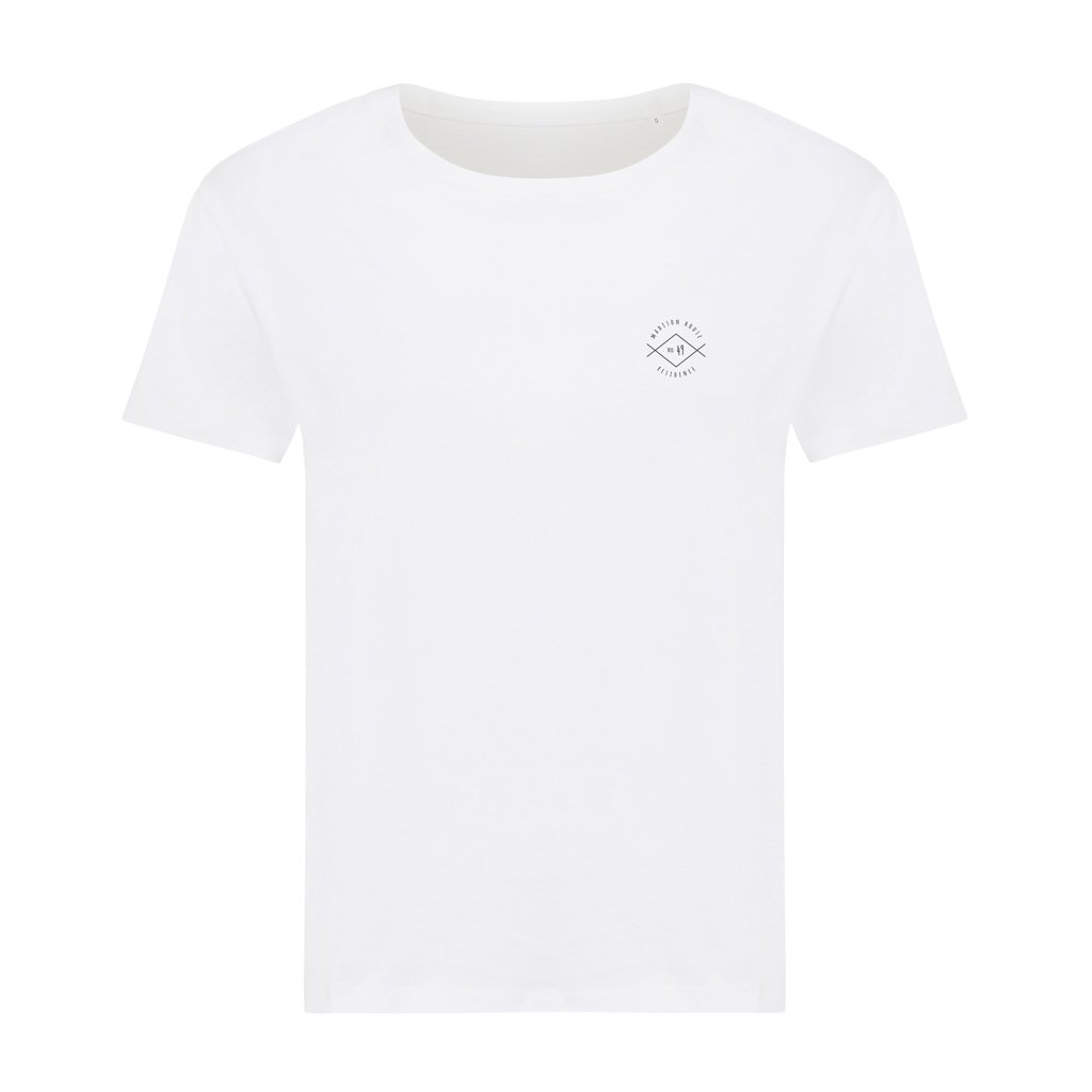 Women’s modern fit t-shirt made from 100% cotton, of which 70% is organic and 30% recycled, 160 G/M². The t-shirt has a nice round neckline from self-fabric. The use of genuine recycled & organic fabric materials and environmental impact claims are guaranteed, by using the AWARE™ disruptive physical tracer and blockchain technology. By scanning the QR code, you will gain access to a dedicated digital passport of the product. 2% of proceeds of each sold product will be donated to Water.org. This product is OEKO-TEX® STANDARD 100 2303045 Centexbel certified. Due to the nature of recycled yarns, impurities and color variations may appear.