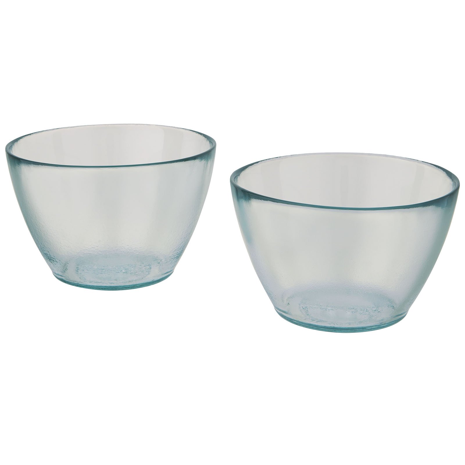 2-piece 100% recycled glass bowl set with a capacity of 700 ml, ideal for serving salads. The bowls are made of recycled glass bottles. Recycled glass is manufactured using less energy, raw material, and additives, than what is required for making traditional glass. Dishwasher safe.