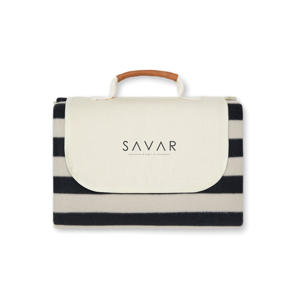 Picnic blanket in soft fleece with cotton canvas and faux leather details. The fleece is made of 100% GRS certified RPET. GRS certification ensures a completely certified supply chain of the recycled materials. The back is made in PEVA, which repels water. Clever construction makes it easy to fold up and take with you. Total recycled content: 56% based on total item weight.