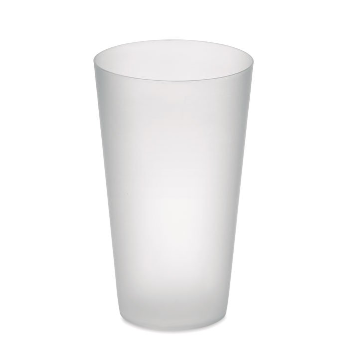 Reusable PP cup with frosted finish. Capacity 550 ml.