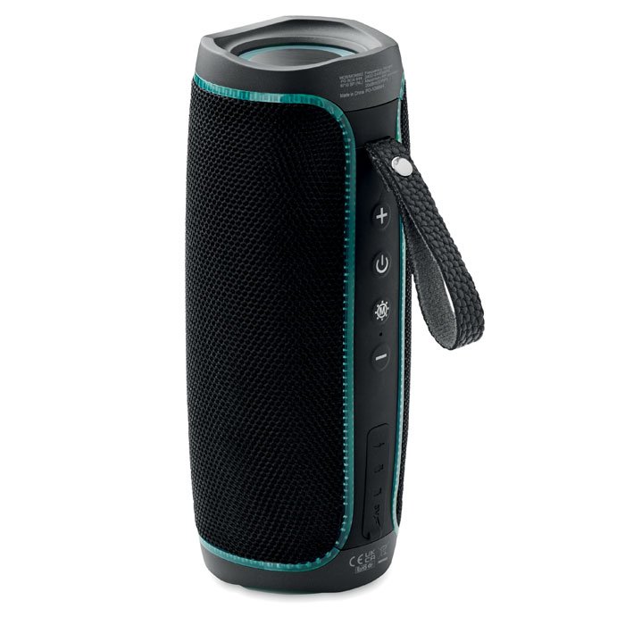 2x5W LED wireless Speaker IPX4 splash proof and LED changing colours light with 1800 mAh battery.
