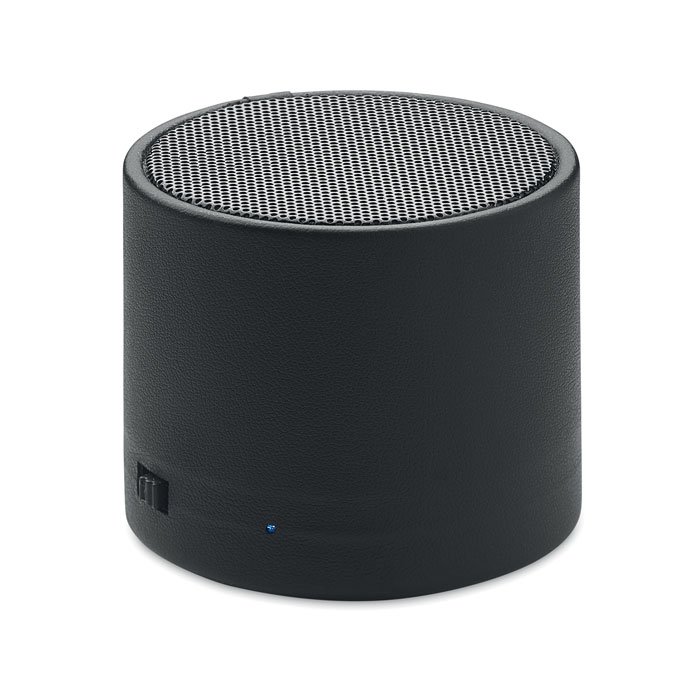 5.0 wireless speaker with casing in ABS and PU which is 58% recycled (40% recycled polyester and 18% recycled PU) and LED light indication. Output data: 3W, 3 Ohm and 5V. Playing time approx. 3h.